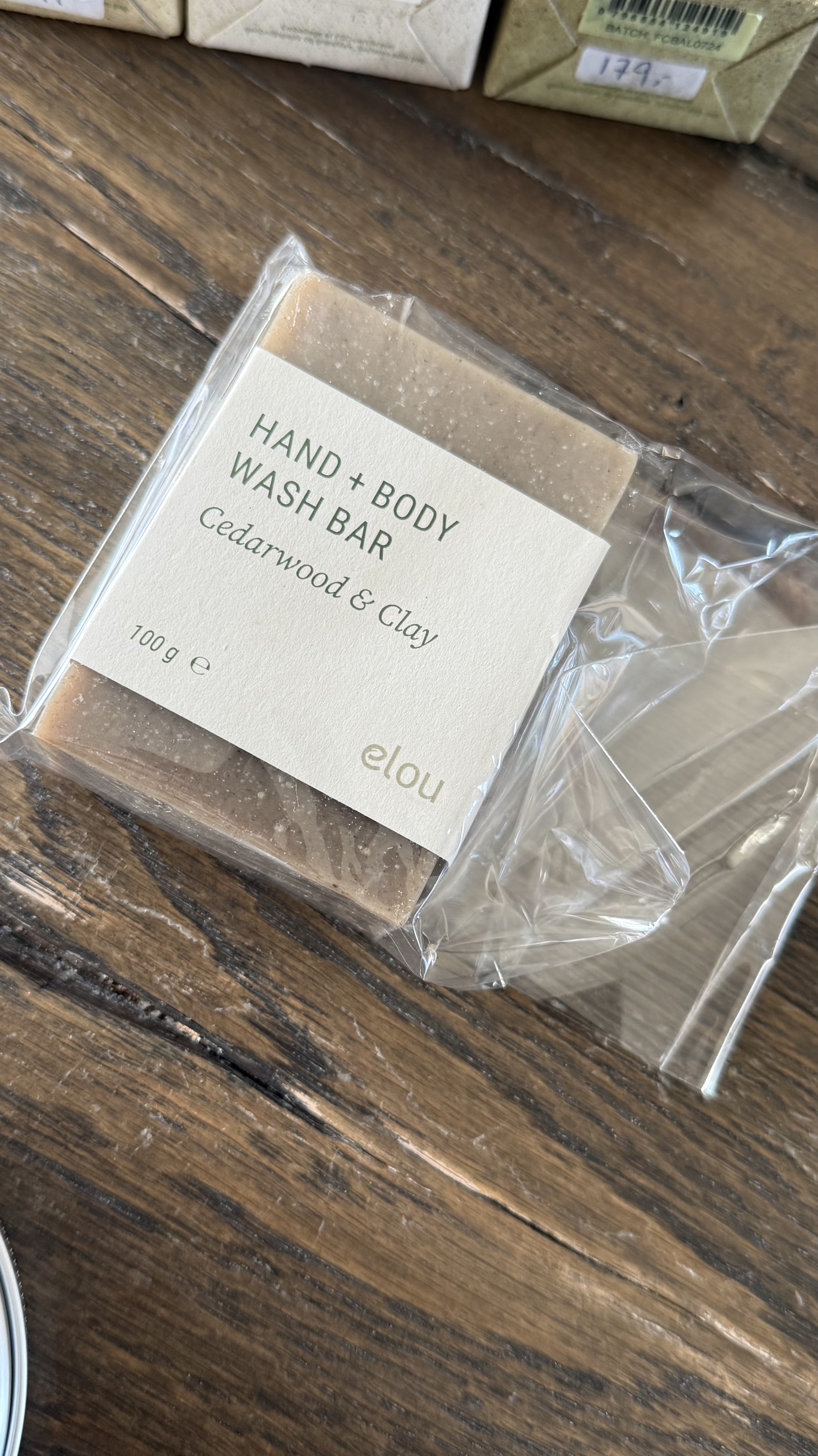 Vores egen absolutte favorit hos Elou er Cedarwood & Clay Hand + Body Bar. Denne økologiske sæbebar har den mest fantastiske duft fra en blanding af cedertræ, citronella, granolie og salvie, som tilsammen skaber en helt særlig opløftende, frisk og aromatisk duft. De plejende æteriske olier er særligt velegnet til at neutralisere både tør og fedtet hud og hår. Blandingen hjælper også mod uren hud og kløende hud/hovedbund. Sæbebaren er lavet af 100% naturlige ingredienser med en base af økologiske vegetabilske fedtstoffer og olier. Med denne bar kan du nemt erstatte den flydende håndsæbe og showergel på samme tid. Godt for dig og godt for vores jord.